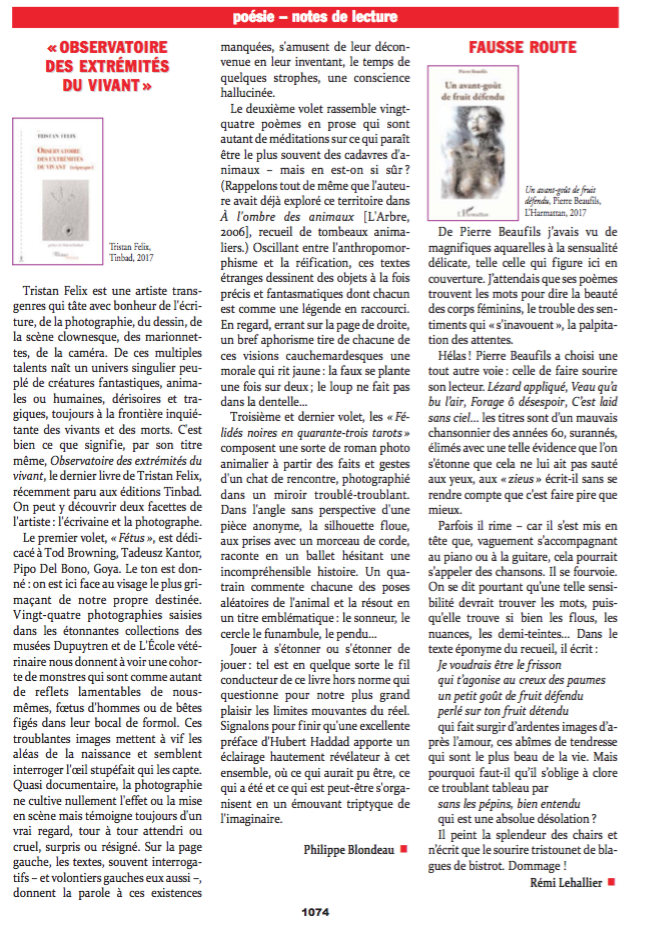 - texte de Fabien Ribery sur son blog, L'Intervalle : "Vole au néant sa part de vie, par Tristan Felix, poémancienne"
